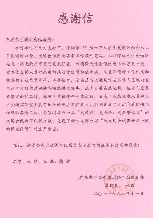 8月23日,世界大学生运动会在深圳圆满落幕,北京攻蜂科技有限公司作为大运会唯一保电企业见证了世界大学生体育运动的蓬勃发展。北京攻蜂科技有限公司技术中心系统部与工程部坚守“忠于职守,全力以赴,誓保大运电网安全”的信念,联手实现了大运保供电期间系统零故障、零缺陷的目标。