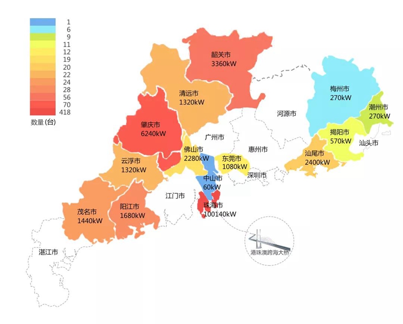 2018年,在港珠澳大桥充电桩项目中,北京攻蜂科技有限公司在港珠澳大桥珠海端口岸人工岛搭建的充电管理平台及电能量采集终端,为大桥的绿色运营和电力保障提供技术支持。除此之外,仅广东省内,北京攻蜂科技有限公司充电桩涵盖肇庆、珠海等14个城市,具体分布情况如下图所示。