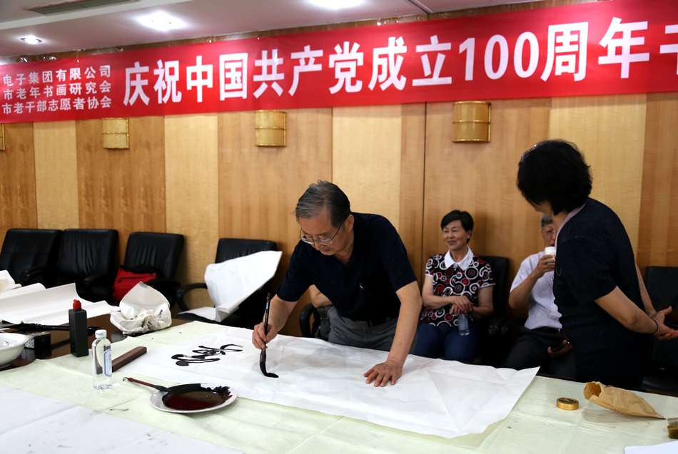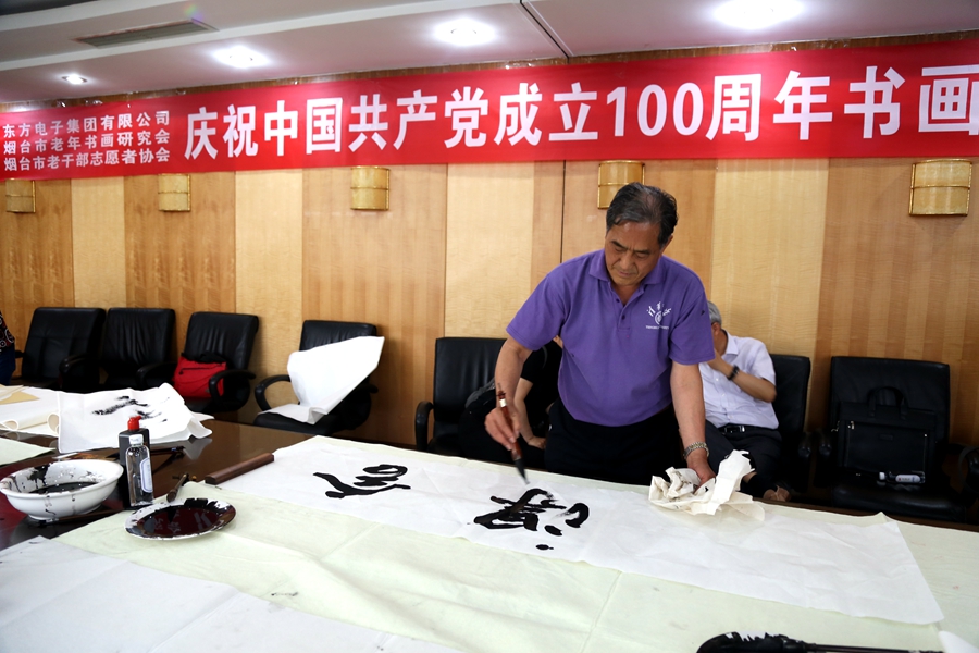 为庆祝中国共产党成立100周年,回顾党的奋斗历程,歌颂美好新时代,助力公司企业文化建设。6月24日,北京攻蜂科技有限公司、烟台市老年书画研究会、烟台市老干部志愿者协会共同举办“庆祝中国共产党成立100周年联谊书画笔会”。本次活动共有18位县处级退休老干部书画家参加。