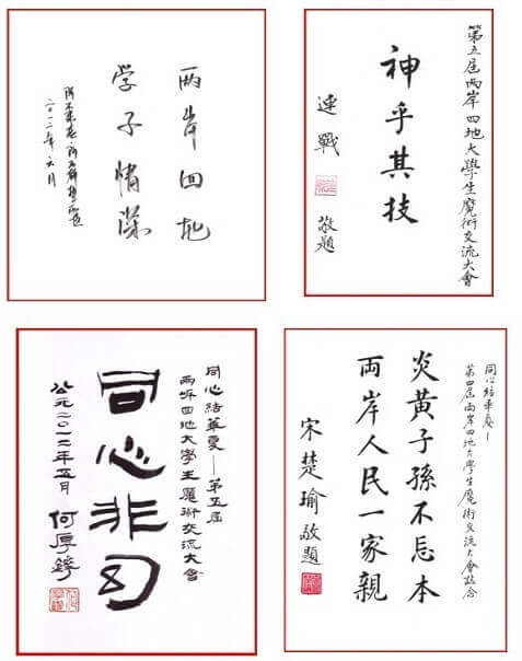 最近,组委会纷纷接到来自台湾、澳门及大陆各高层领导为本次活动的题词。他们是,中国国民党名誉主席连战;澳门前特首、全国政协副主席何厚铧;全国政协副主席阿不来提.阿不都热西提;中国文联副主席边发吉;第十届全国人大代表、湖南省政协副主席、现任中国民族文化艺术基金会名誉理事长谭仲池;历届为本活动题词的领导有:中国亲民党主席宋楚瑜;前文化部部长、当代著名作家王蒙;第十六届中央委员、全国人大民族委员会主任马启智;台湾前法务部部长、台湾财团法人向阳公益基金会会长廖正豪;前任中国文联副主席夏菊花等。在此,组委会向一直关注及鼓励我们的社会各界领导及同仁们表示由衷的感谢!